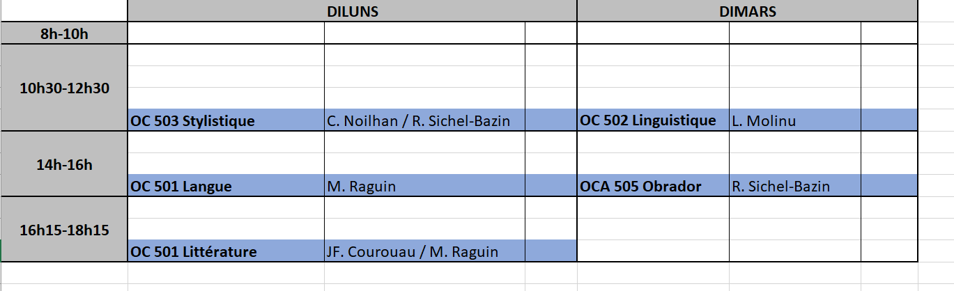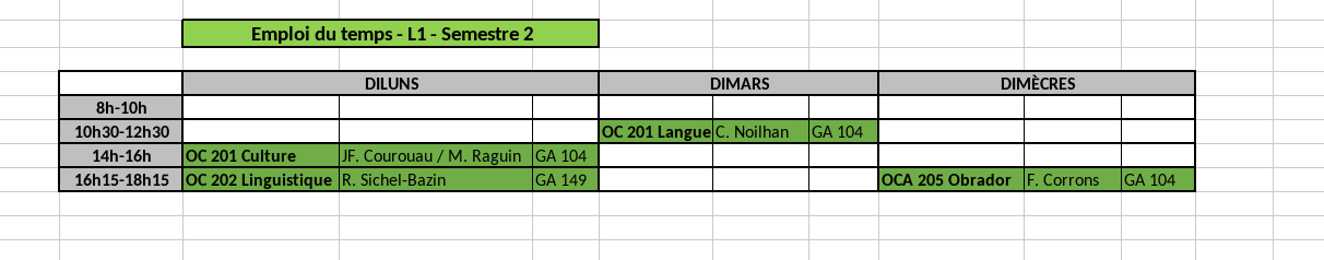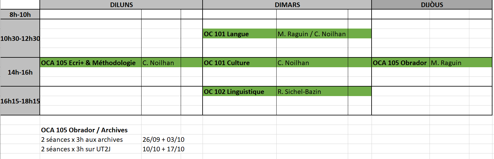 Les emplois du temps de Semestre 1 pour l'année 2024-2025 de la Licence et du Lansad Occitan sont disponibles !